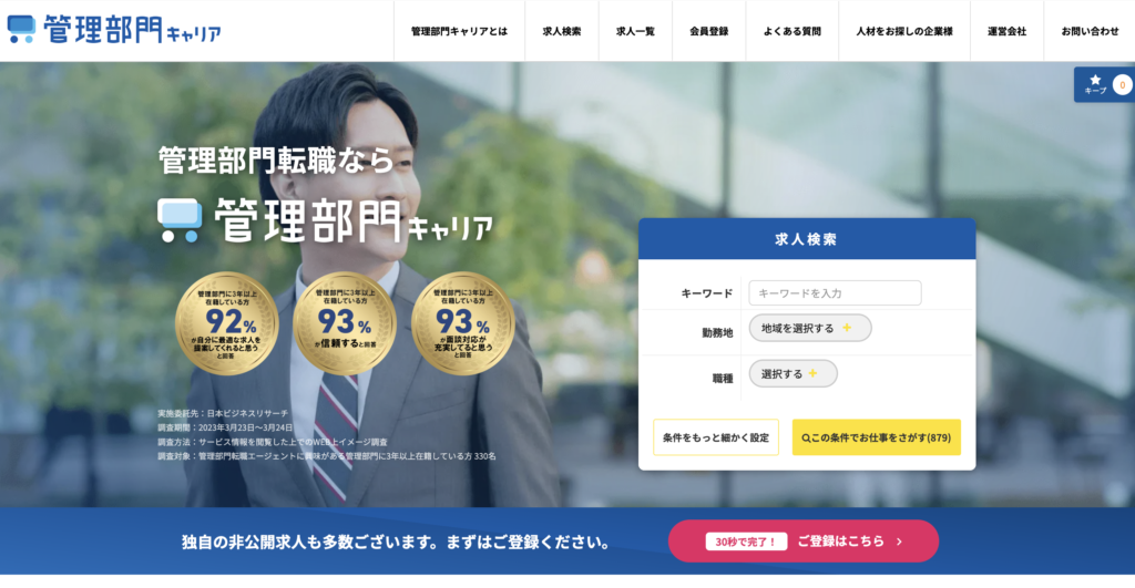 管理部門の転職は、求人の7〜9割が非公開で競争率も高く、エージェント選びひとつで結果が大きく変わります。