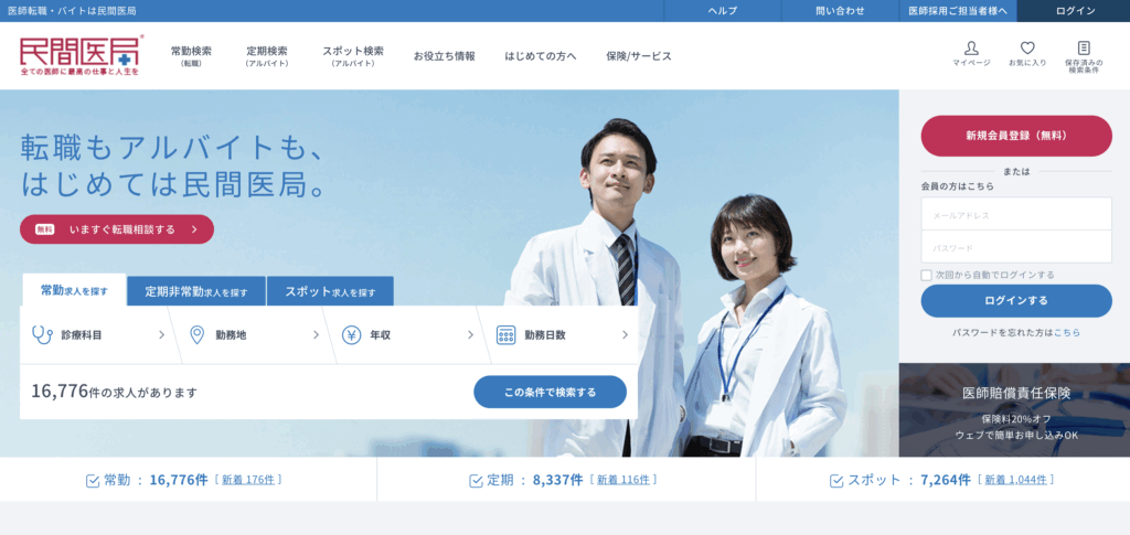 30万人以上の医師が登録する医療情報専門サイト「m3.com」を母体とする、医師紹介業界の最大手です。最大の強みは、その圧倒的な情報量と交渉力にあります。