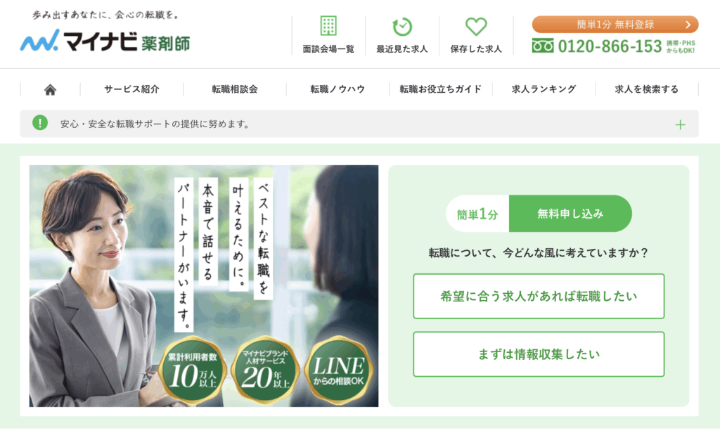 大手人材企業マイナビが運営する、薬剤師専門の転職エージェント。調剤薬局から製薬会社まで幅広くカバーします。