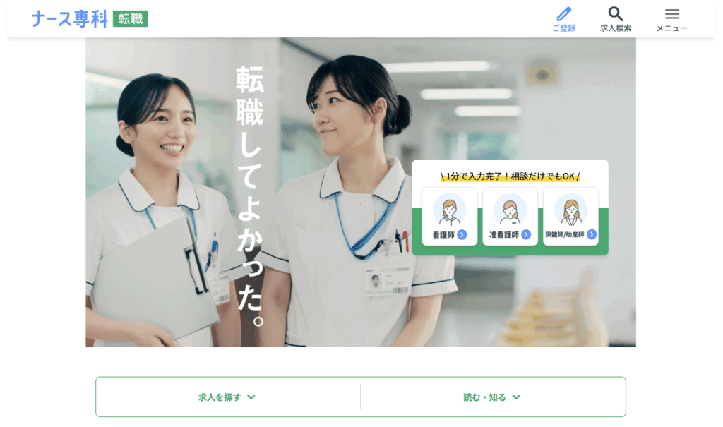 看護師専門の転職エージェントとして、業界トップクラスの求人数と利用者数を誇ります。