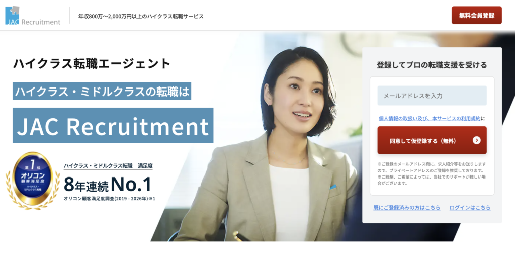 ハイクラス・ミドルクラス転職満足度 8年連続No.1